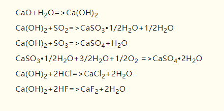 该新型一体化脱硫除尘技术反应原理是利用生石灰或消石灰等碱性物质作为反应剂来吸收烟气中的SO2和其他酸性气体,反应式为: